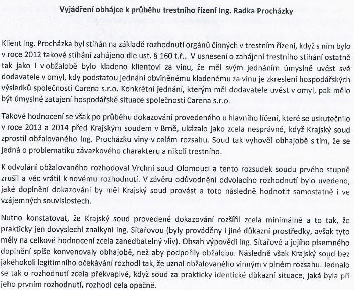Vyjádření k trestu Ing. Procházka