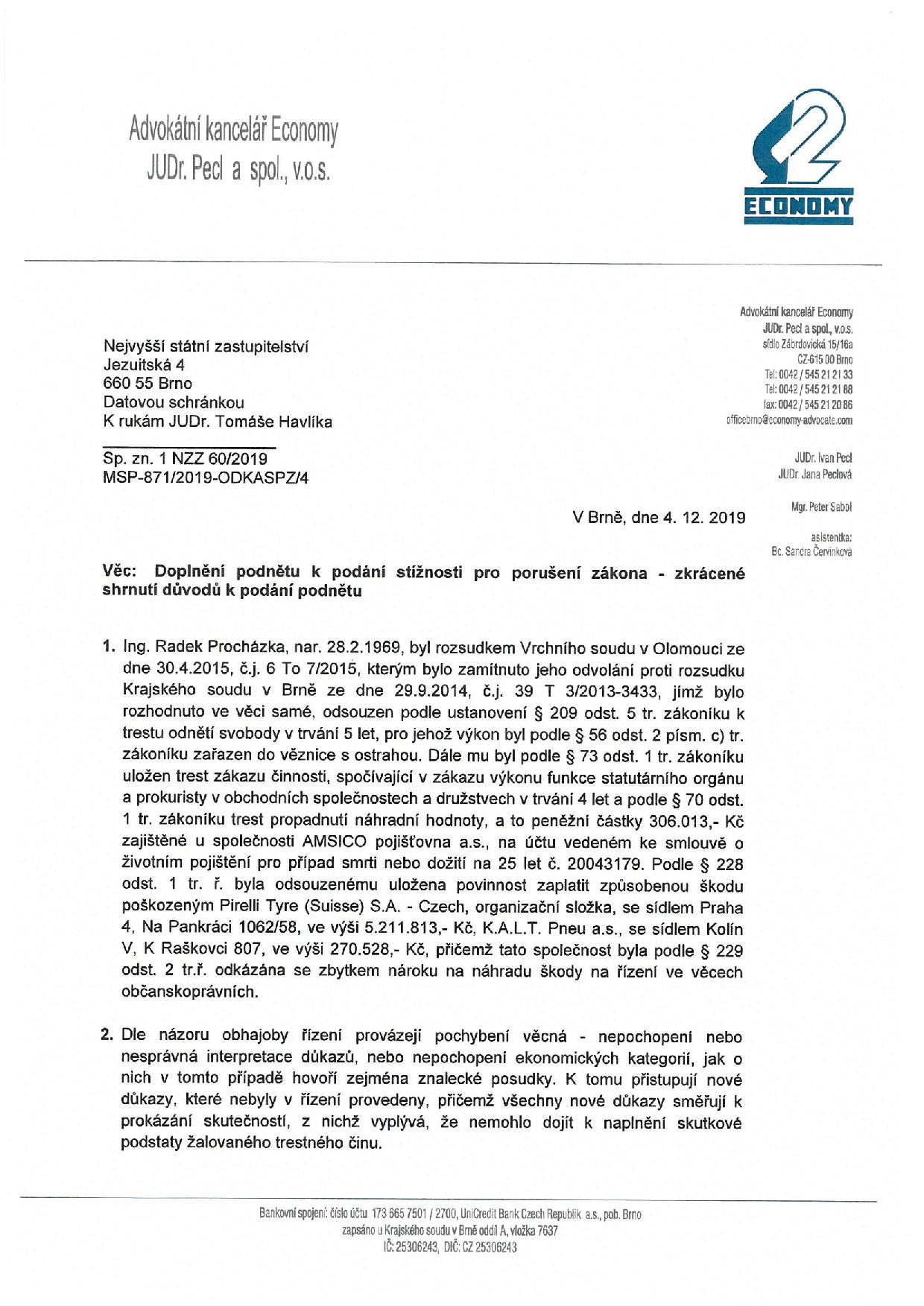 Vyjádření k trestu Ing. Procházka