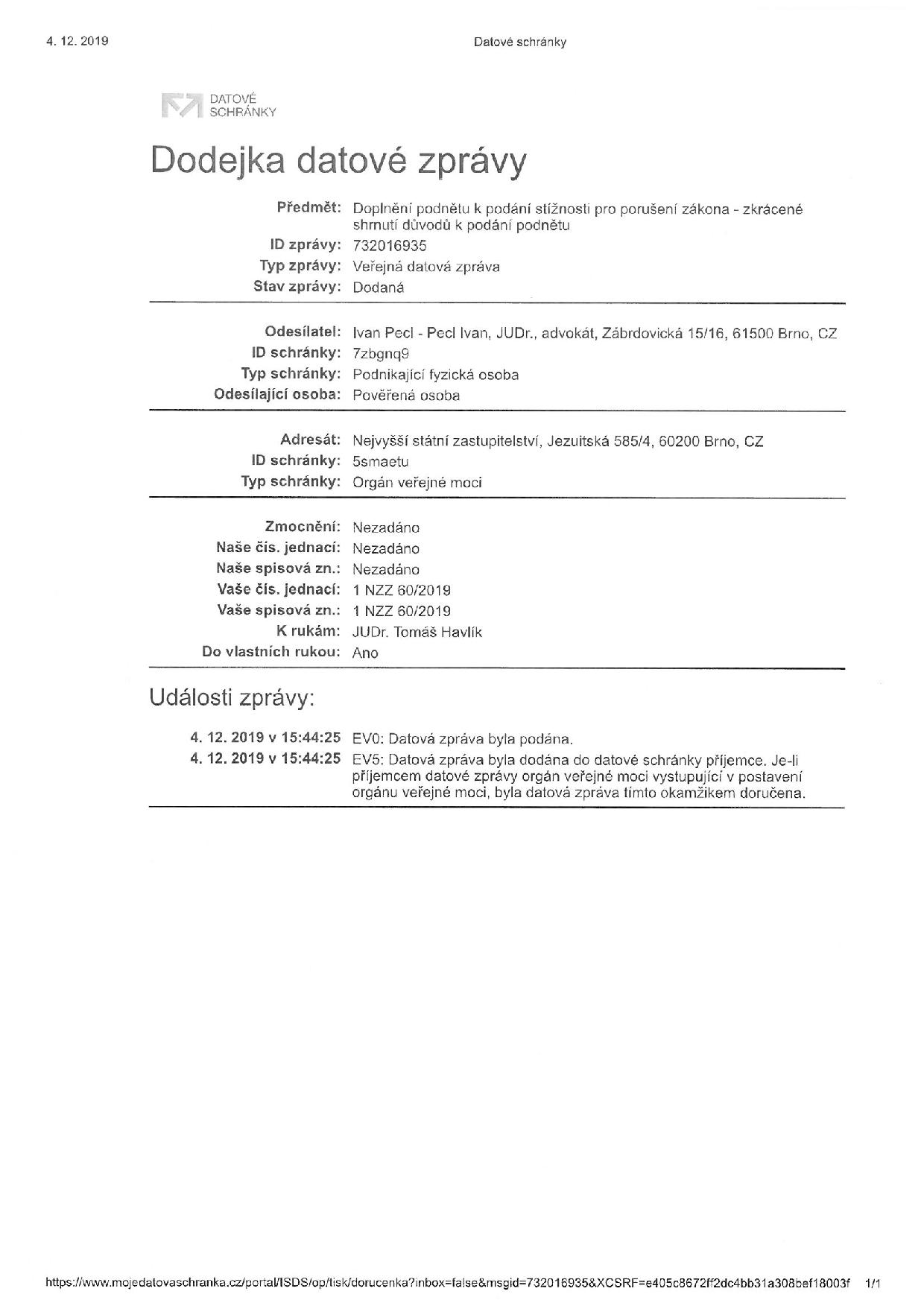 Doplnění podnětu k podání stížnosti